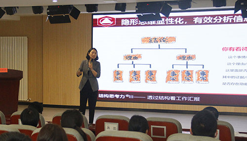 “思考是人類最大的樂趣”。為提高員工思考和表達(dá)能力,建立彼此交流時(shí)共同的思維和語(yǔ)言平臺(tái),提高組織溝通效率,10月23日,集團(tuán)邀請(qǐng)楊秀萍老師為鄭地英才班講授《透過結(jié)構(gòu)看工作匯報(bào)》,集團(tuán)總部及子公司共150余名員工參加。