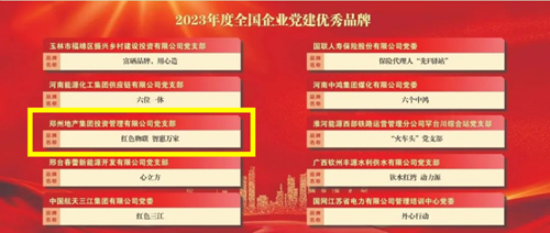 近日,鄭州地產集團投資管理有限公司黨支部“紅色物聯 智惠萬家”黨建品牌被中國企業聯合會、中國企業家協會、《中國企業報》集團和中企黨建研究院聯合授予“2023年度全國企業黨建優秀品牌”榮譽稱號。