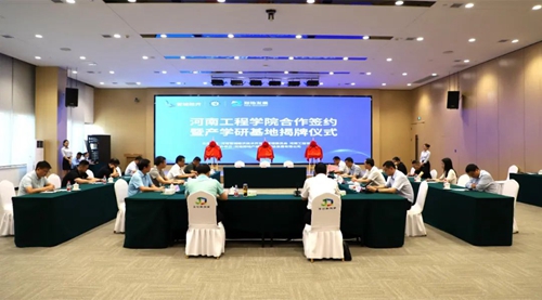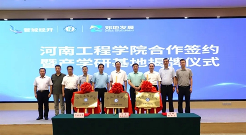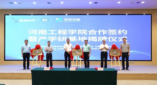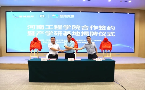 會上,河南工程學院、管城經濟技術開發(fā)區(qū)管理委員會、河南鄭地產城融合建設發(fā)展有限公司共同簽署產學研合作協(xié)議,并現(xiàn)場為河南工程學院校外實習基地、產學研合作基地、就業(yè)基地揭牌。