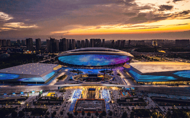 “星空夜市位于奧體中心的樞紐位置——東下沉廣場,北側緊鄰鄭州唯一一個國際標準的冰上運動中心。