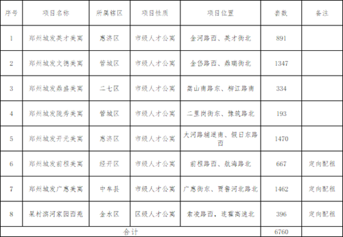 按照《鄭州市人才公寓管理暫行辦法》(鄭政辦〔2023〕11號)要求,2023年全市第十批人才公寓配租事項公告發布。此次配租人才公寓項目8個,其中7個為鄭州城發美寓系列人才公寓,具體情況如下: