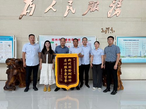 鄭房測繪公司第三分公司接到鄭州新發(fā)展?jié)欀梅康禺a開發(fā)有限公司贈送錦旗 高鵬/攝