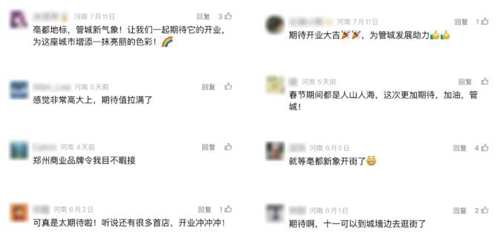 “讓我們一起期待它的開業,為這座城市增添一抹亮麗的色彩!”“感覺非常高大上,期待值拉滿了”“期待開業大吉,為管城發展助力”從這些稿件中的評論區,我們能看出市民對“亳都·新象”的期待以及鄭州文商旅融合發展的信心。