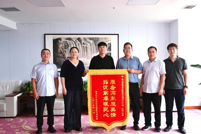 “從資料核驗到出具預測繪報告全程高效專業”欣可新材料公司代表稱贊。這面代表著委托單位對鄭房測繪高度肯定的錦旗,不僅體現了鄭房測繪“以客戶為中心”服務理念,更是對公司專業、高效的認可和鼓勵。下一步,鄭房測繪公司將持續在專業領域守正創新,深入踐行新時代工匠精神,努力為企業和群眾提供更加優質、高效、溫暖的測繪服務,為鄭州市中心城市建設和經濟社會發展貢獻積極鄭房力量。