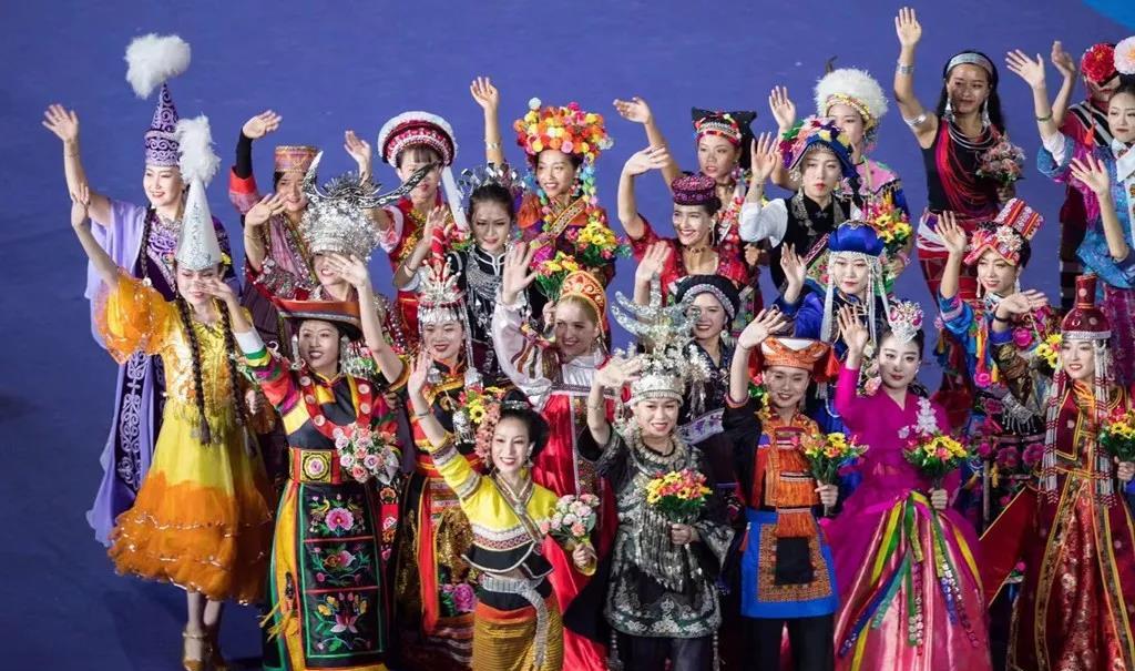 各民族運(yùn)動(dòng)員身著民族盛裝,精神抖擻,闊步走來。各代表團(tuán)行進(jìn)中30秒的駐停表演,展示了中華文化百花園的絢麗多姿,讓現(xiàn)場觀眾贊嘆沉醉。