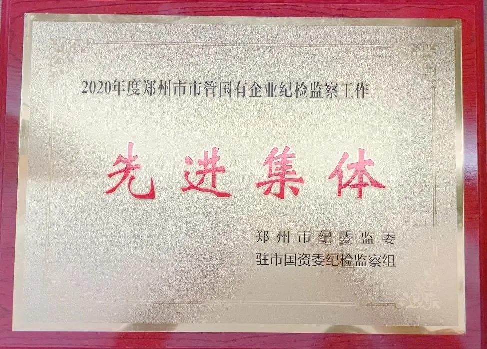 近日,集團紀委被鄭州市紀委監委駐市國資委紀檢監察組授予“2020年度鄭州市市管國有企業紀檢監察工作先進集體”榮譽稱號。