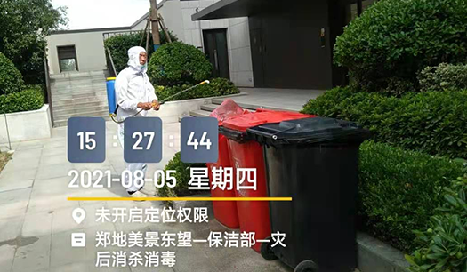 為有效阻斷疫情傳播途徑,“揚帆志愿者服務隊”組織人員在東望社區每天開展消殺工作。針對地下車庫、電梯間、垃圾場等重點區域,以及室內過道、游樂場等居民接觸密切的公共區域進行全方位防疫消殺,確保不漏一處、不留死角。從8月1日開始,累計完成消殺面積12萬平方米。炎炎夏日,酷暑難當,衣服早已被汗水浸透,但他們始終充滿斗志,從不抱怨。此時,滿是汗水的“消殺藍”,就是鄭州最靚麗的裝扮。