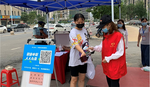 疫情防控刻不容緩。志愿者們首先仔細詢問了社區值守人員防疫工作流程及細節,認真記錄社區防疫的步驟和相關要求。志愿者們配合社區工作人員提醒大家正確佩戴口罩,對進出社區人員進行健康掃碼和體溫測量,一個個忙碌的身影為社區抗疫一線筑牢“防護墻”。